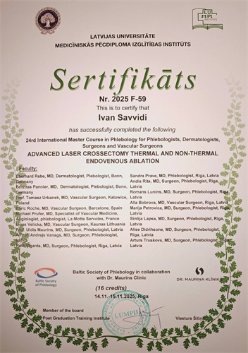 Пріорітетні напрямки професійної діяльності: обстеження, діагностика та лікування пацієнтів з захворюванням венозної системи. Лікування варикозної хвороби методами: